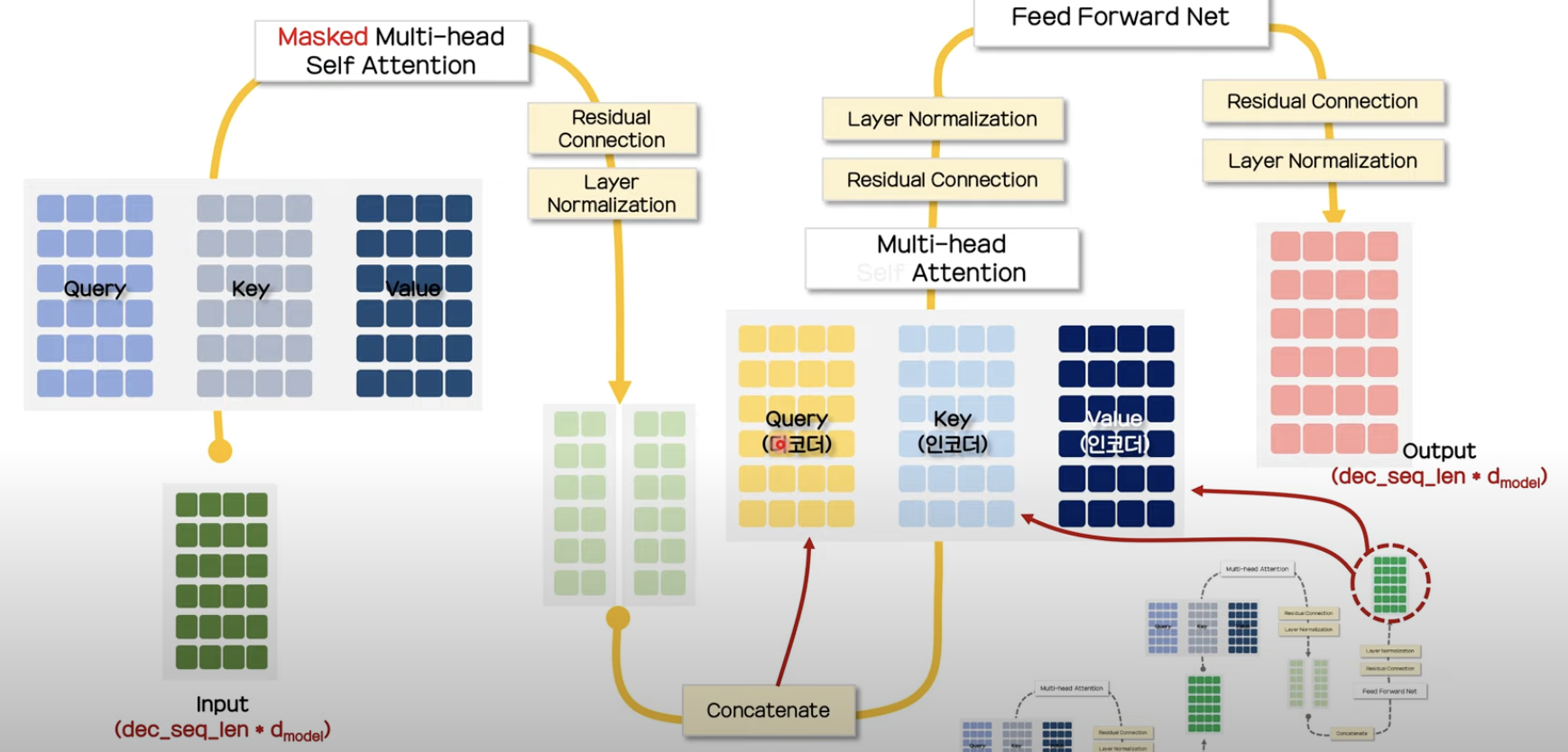 - 마찬가지로, 디코더의 각 position은 해당 position까지 모든 position을 다룰 수 있음