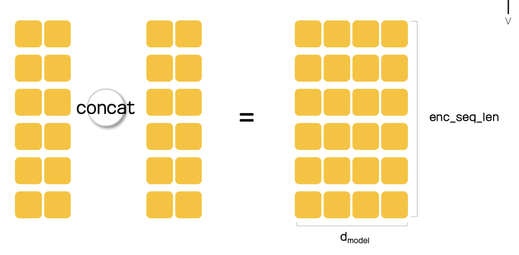 위 예시처럼 2개의 num_head를 최종 concat하여 attention을 구하게 된다.