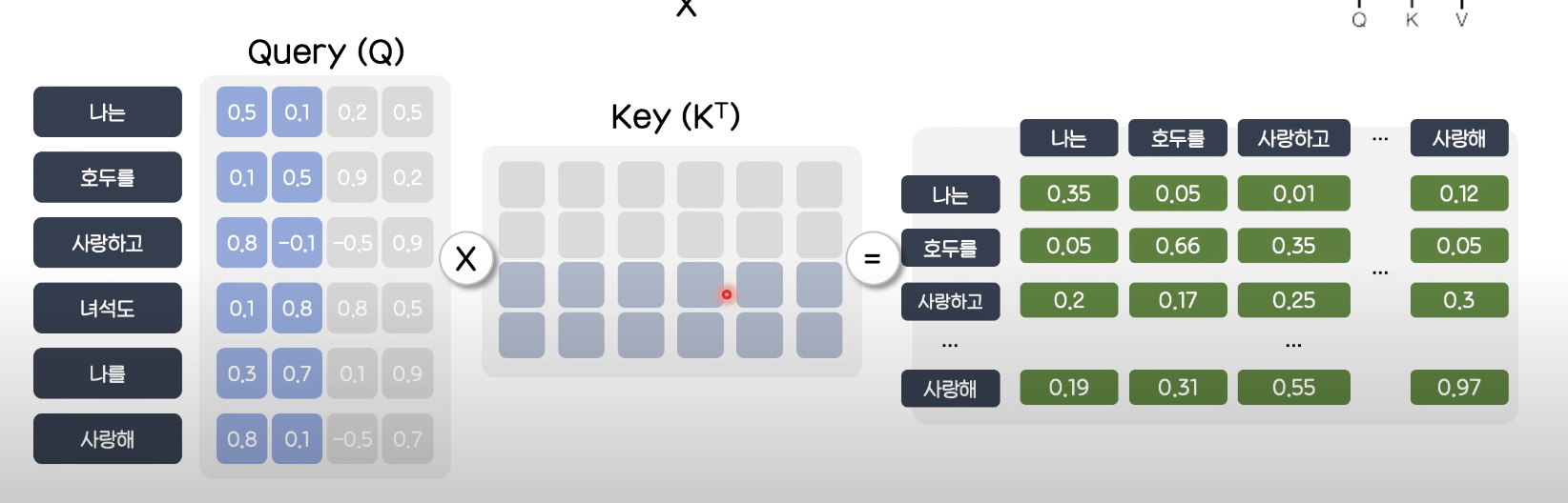 해당 attention에서는 Key, Query, Value의 개념이 차용된다.