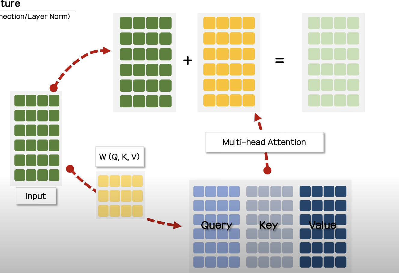 위 도식은 모델 구조의 add에 해당하는 부분으로 multi-head attention 결과에 input값을 그대로 더해준다.